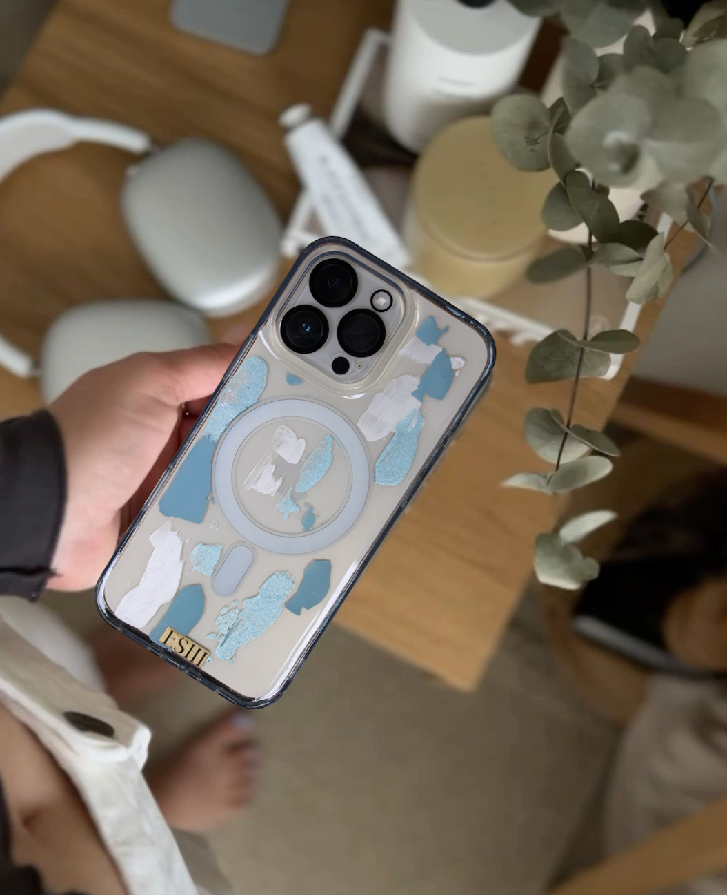 Inspirado en la elegancia de lo abstracto, he creado la Case Skyler que por su gama de colores proyecta calma y elegancia. Este diseño lo he pintado sobre una funda MagSafe, que por su aro metálico facilita el adherir accesorios como holder, tarjetero, cargador MagSafe, etc. ¡Estoy segura que te encantará!