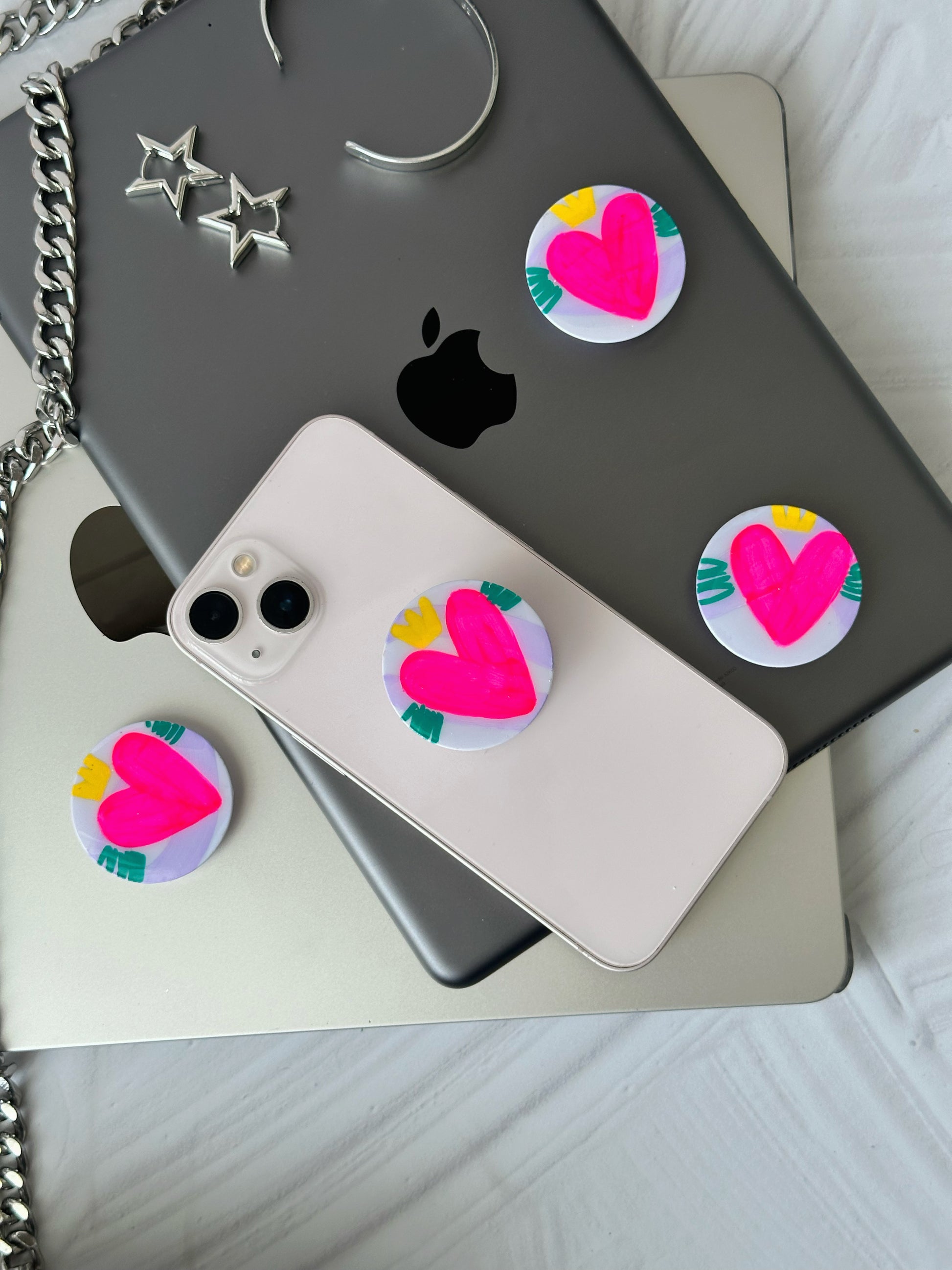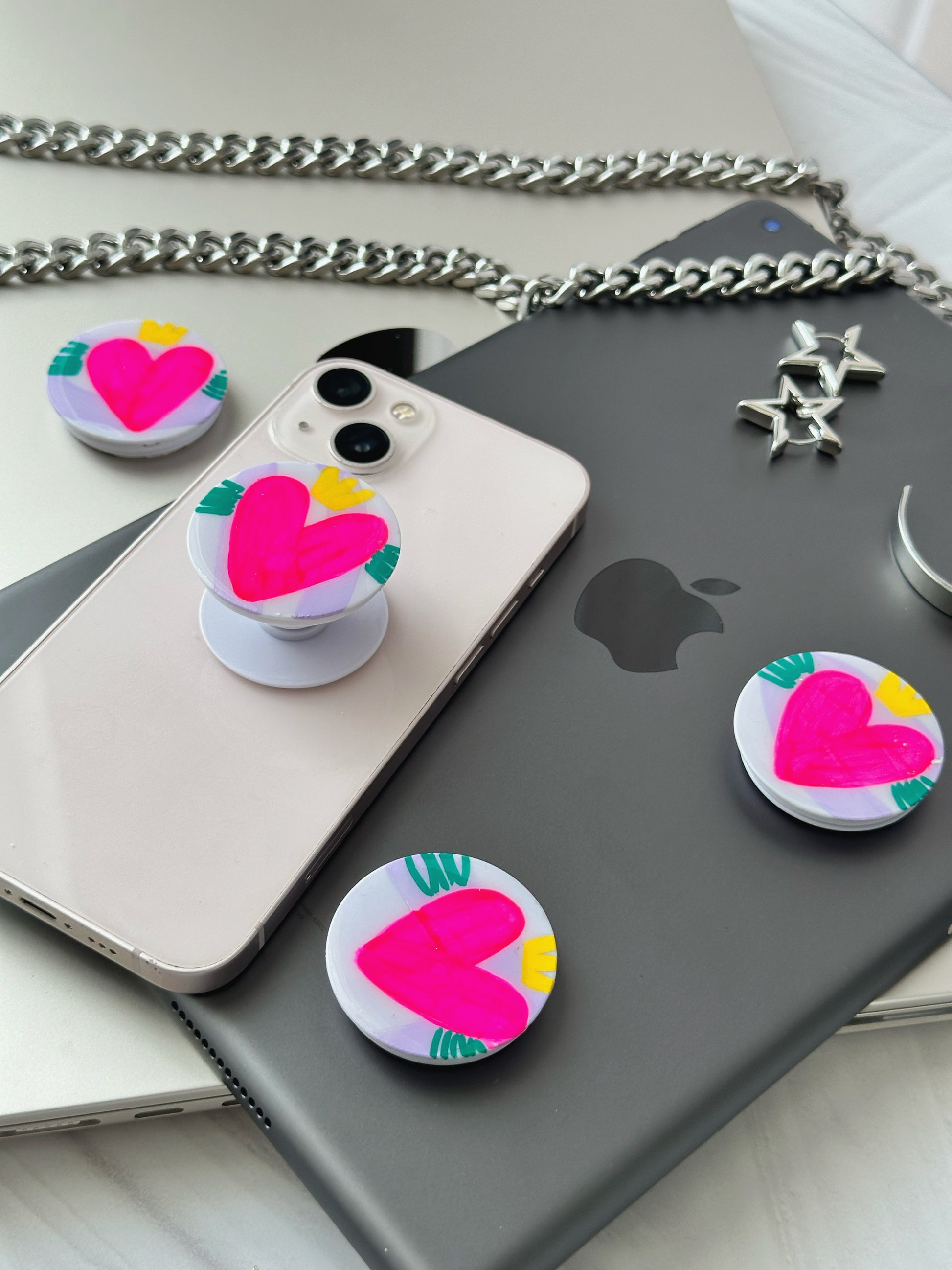 Nuestros Holders se pegan a la parte trasera de tu celular o case para agregar estilo y toque de arte a tu accesorio y a su vez ayudando al agarre del mismo sin tener que poner el dedo meñique debajo.